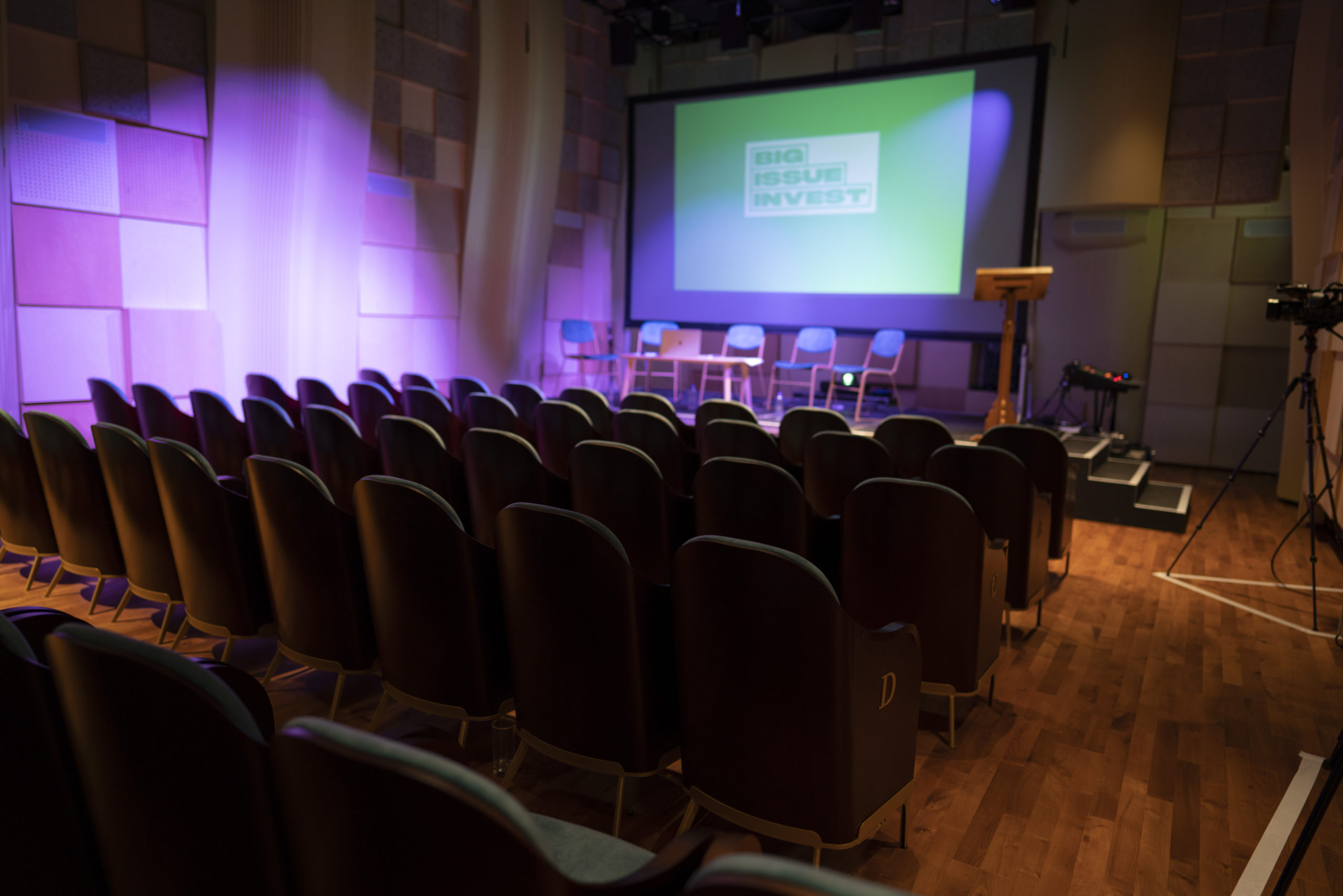 Our stunning contemporary auditorium gives you a fully flexible space to work with. It has fantastic acoustics with a world-leading d&b SoundScape system, and is fully soundproofed. Immediately adjacent is a beautiful space for hospitality – anything from breakfast coffees to champagne receptions.