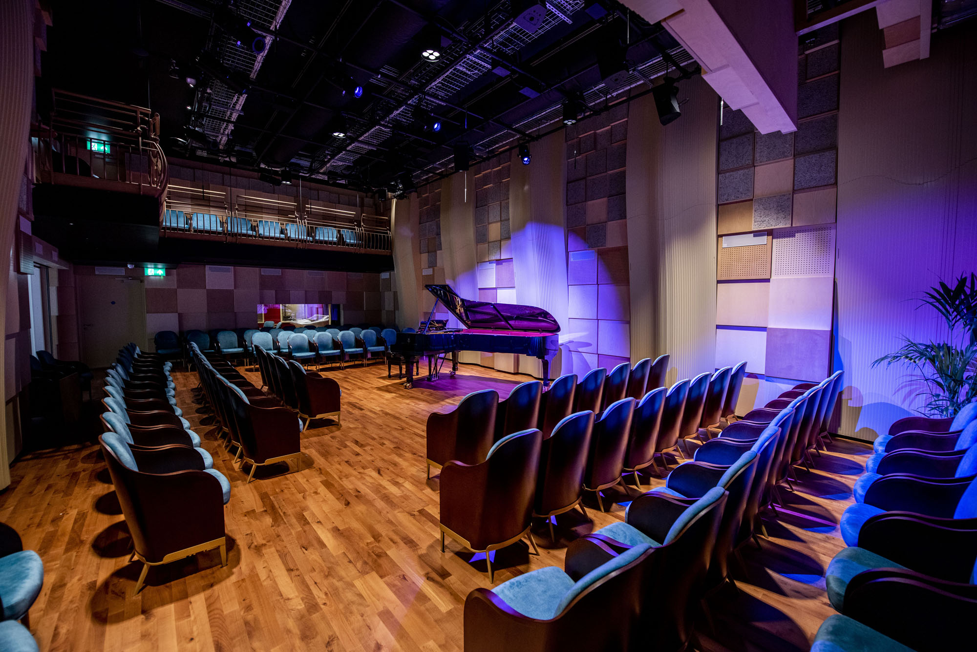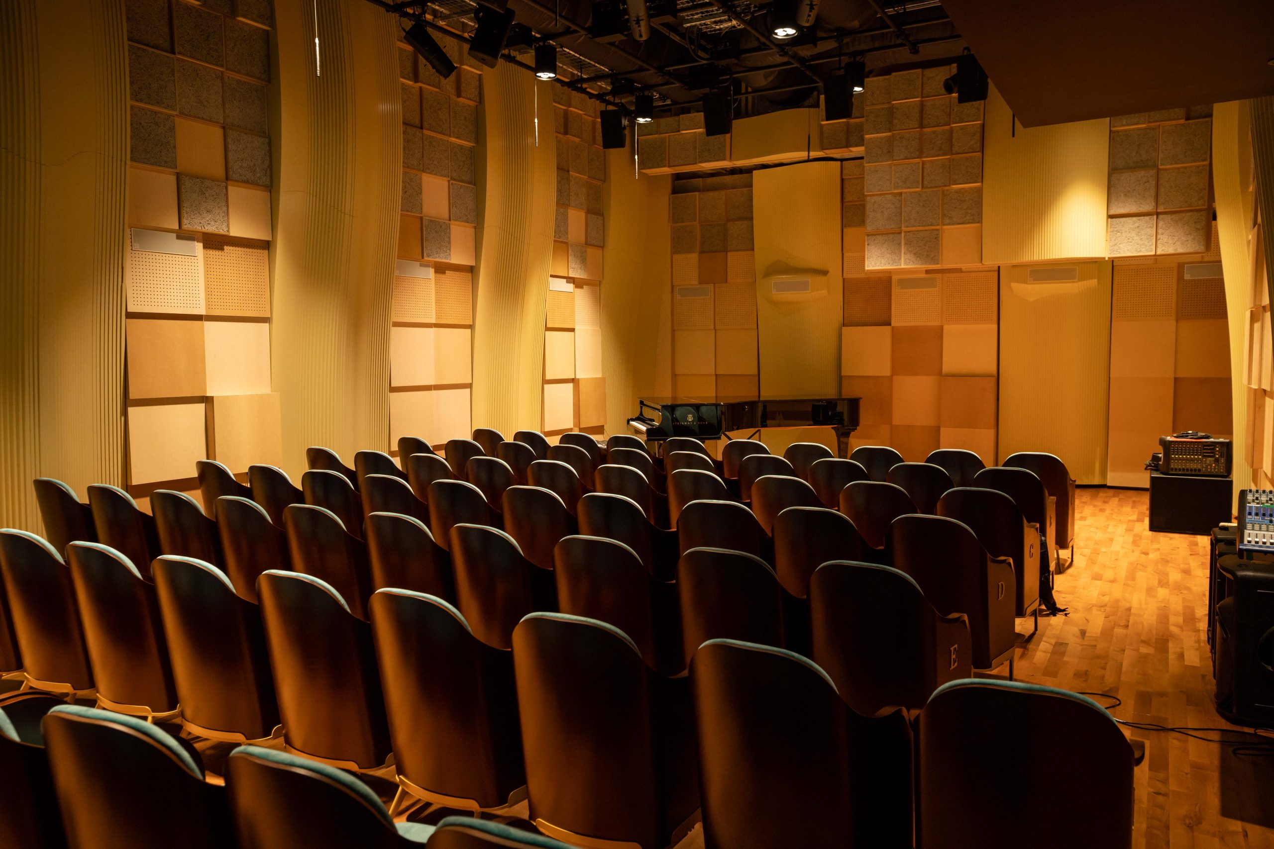 - Seated – in straight rows: 107 seats, including balcony